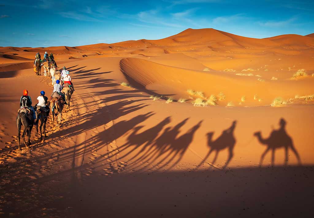 Breakfast and free morning for optional activities. Around 15.00 Hrs, we will be picked up at the hotel lobby in a modern Jeep 4×4 (in regular – 6 people per Jeep), to start an exciting Desert Safari. On the way we will stop on the big dunes to take pictures of the beautiful desert, play in the golden sands and watch the spectacular sunset. We will then arrive at a traditional Arabian camp, where we will have the opportunity to enjoy activities such as camel riding, henna painting, smoking the aromatic shisha (water pipe), live shows such as belly dancing and a delicious BBQ dinner. At the end of dinner, we will return to the hotel. Excursion with Spanish speaking drivers.